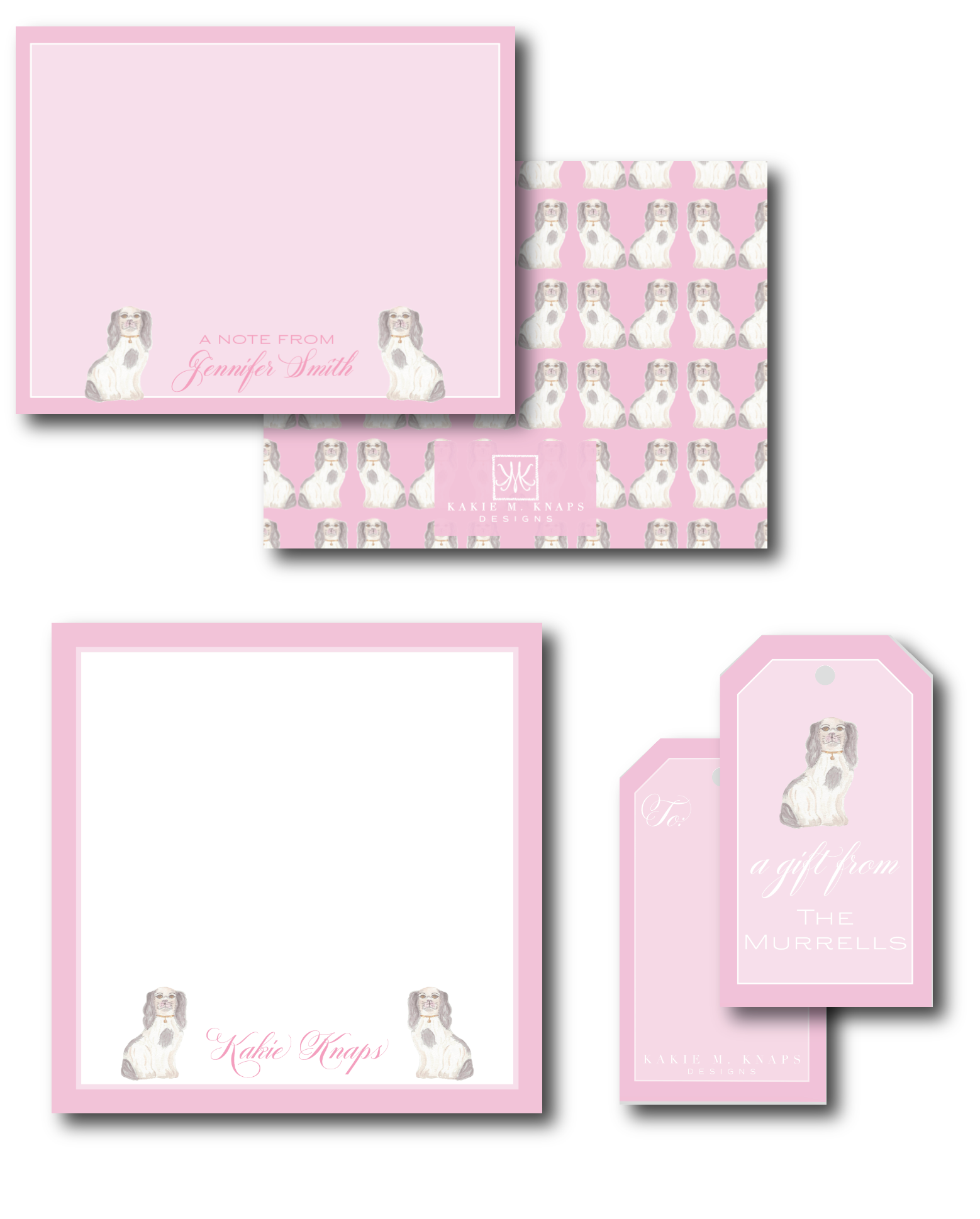 Personalized Staffordshire Dog Grandmelinnial Design — Choose A2 Stationery Set, 100-Page Notepad, or coordinating gift tags. Coordinates with our 2026 The China Cabinet Desktop Calendar