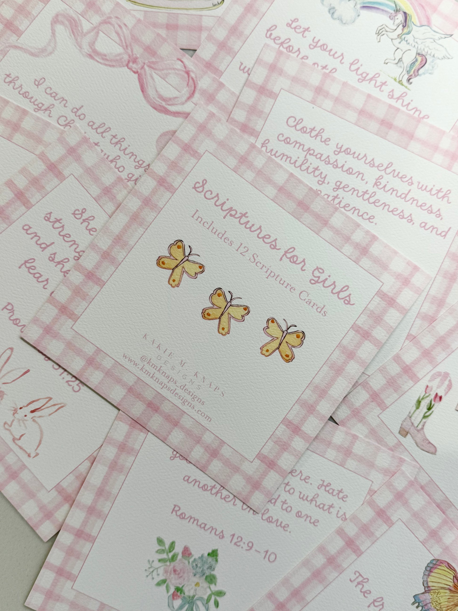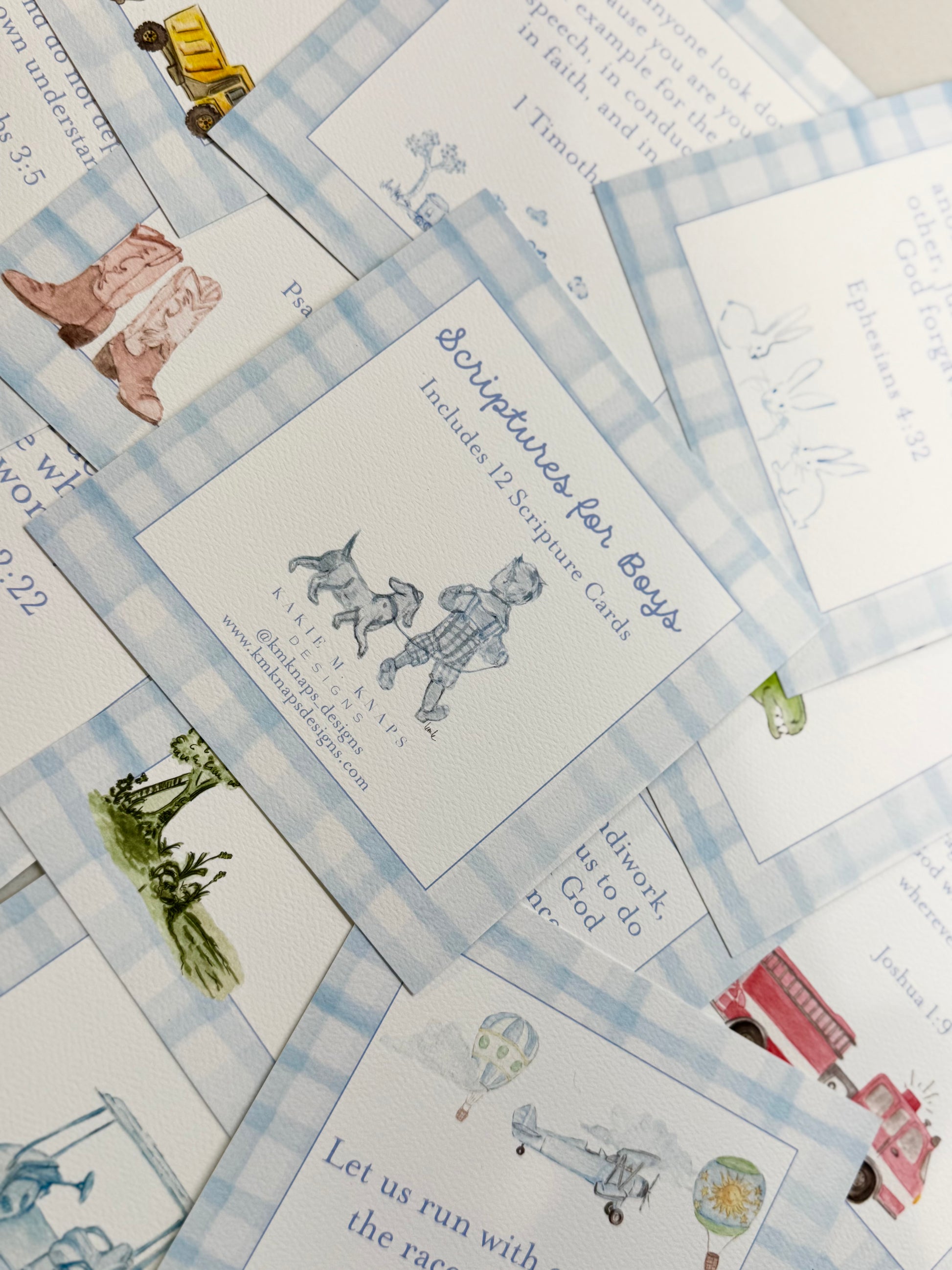 Each card features a unique illustration + verse (12 total)