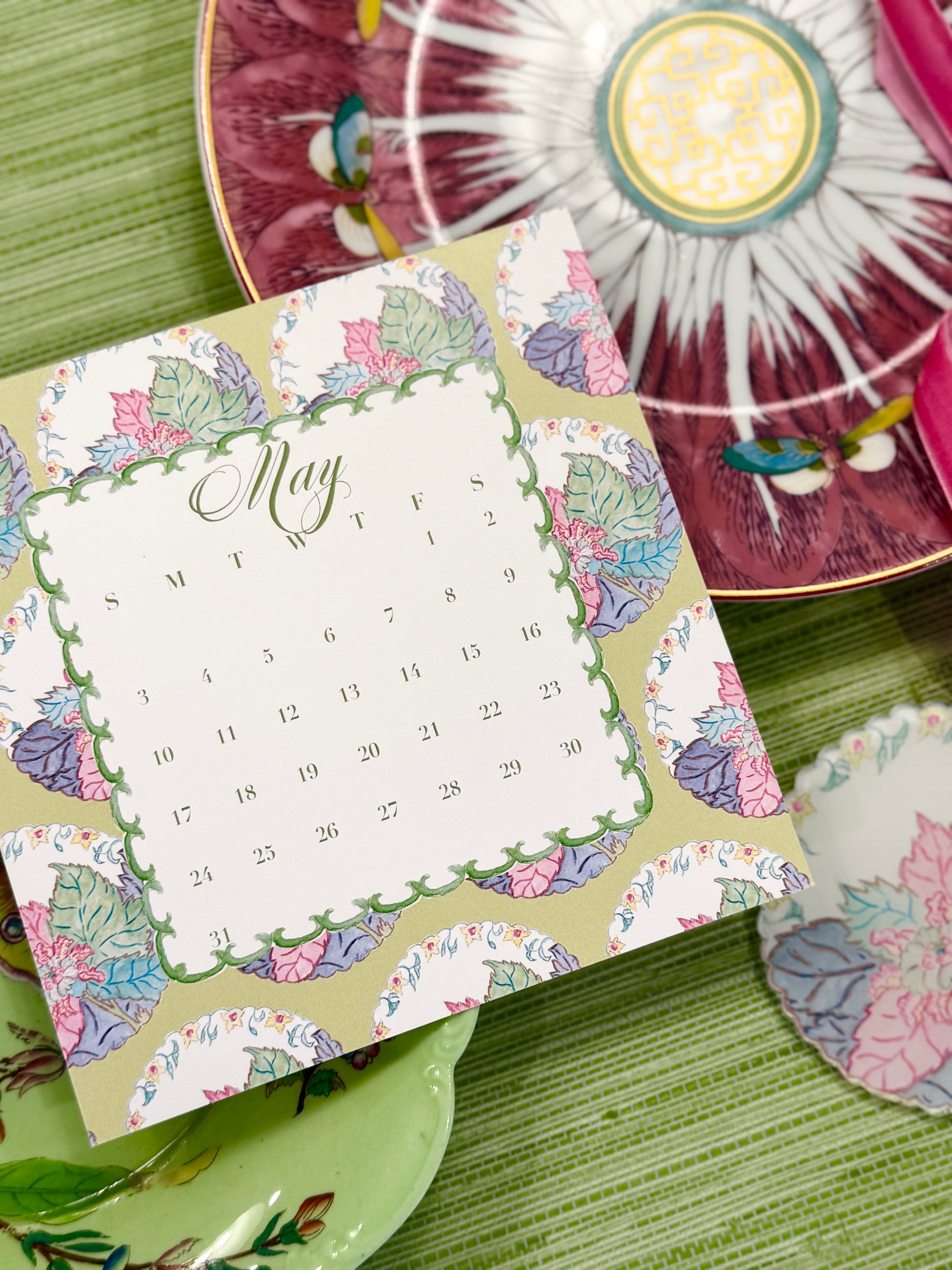 This set includes 12 double-sided 6x6 calendar cards, each featuring a hand-painted design by Kakie Knaps—inspired by the delicate details and cherished heirlooms found in the classic china cabinet. From soft florals and scalloped edges to fine porcelain motifs, each month captures the nostalgia of grandmillennial charm and the joy of treasured keepsakes.