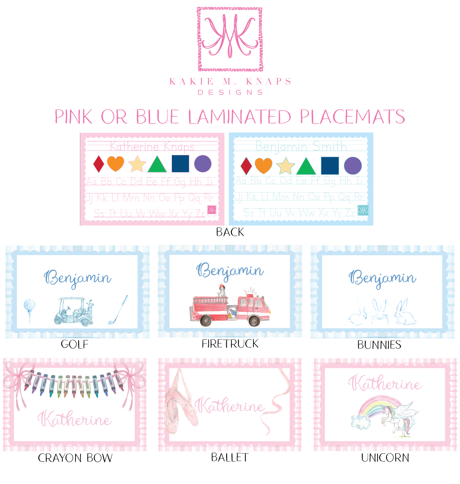 Make mealtime and learning time extra special with these custom laminated placemats featuring my hand-painted watercolor artwork and your child’s name!